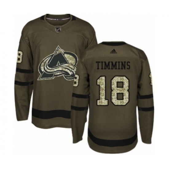 >Youth Adidas Colorado Avalanche #18 Conor Timmins Authentic Green Salute to Service NHL Jersey