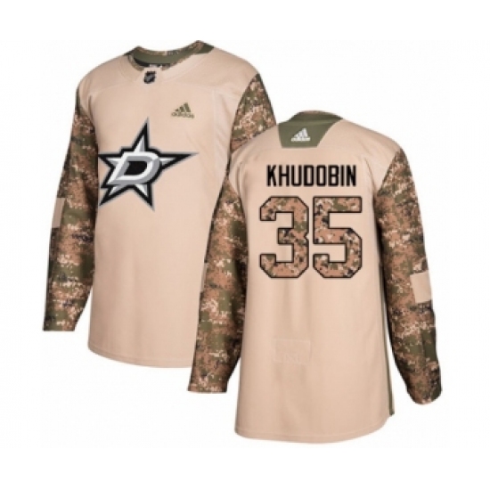 >Youth Adidas Dallas Stars #35 Anton Khudobin Authentic Camo Veterans Day Practice NHL Jersey