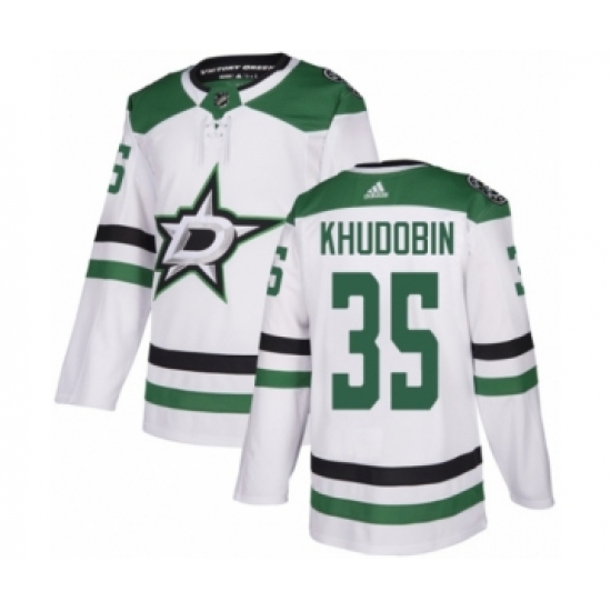Men's Adidas Dallas Stars #35 Anton Khudobin Authentic White Away NHL Jersey