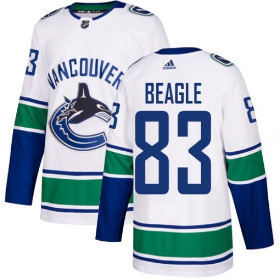 >Youth Adidas Vancouver Canucks #83 Jay Beagle Authentic White Away NHL Jersey