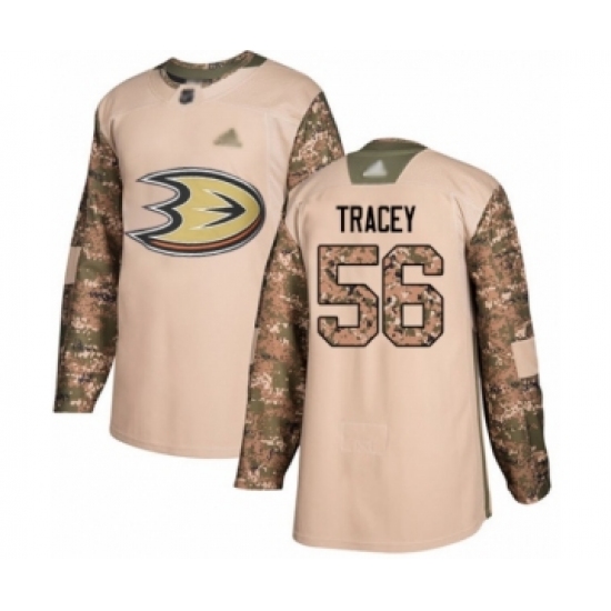 >Youth Anaheim Ducks #56 Brayden Tracey Authentic Camo Veterans Day Practice Hockey Jersey