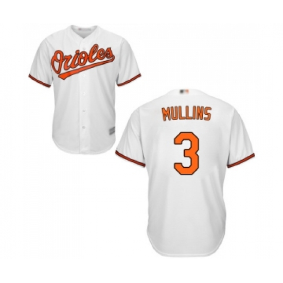 >Youth Baltimore Orioles #3 Cedric Mullins Replica White Home Cool Base Baseball Jersey