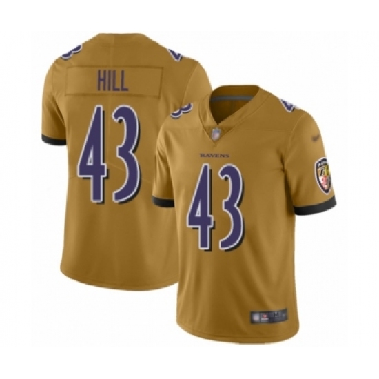 >Youth Baltimore Ravens #43 Justice Hill Limited Gold Inverted Legend Football Jersey