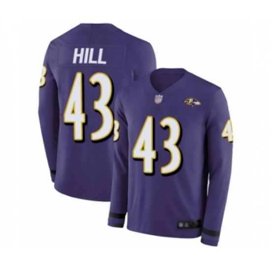 Men's Baltimore Ravens #43 Justice Hill Limited Purple Therma Long Sleeve Football Jersey
