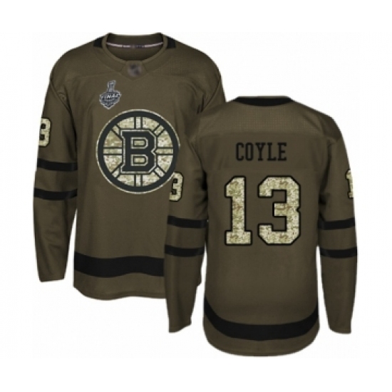 >Youth Boston Bruins #13 Charlie Coyle Authentic Green Salute to Service 2019 Stanley Cup Final Bound Hockey Jersey