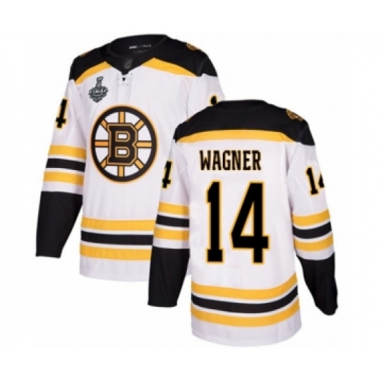 >Youth Boston Bruins #14 Chris Wagner Authentic White Away 2019 Stanley Cup Final Bound Hockey Jersey