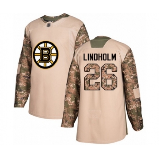 >Youth Boston Bruins #26 Par Lindholm Authentic Camo Veterans Day Practice Hockey Jersey