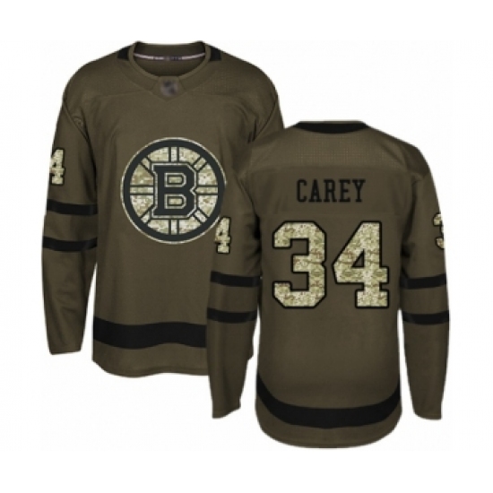 >Youth Boston Bruins #34 Paul Carey Authentic Green Salute to Service Hockey Jersey