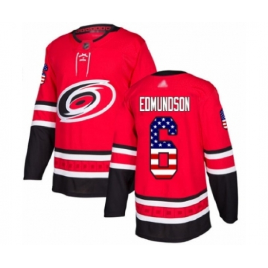 >Youth Carolina Hurricanes #6 Joel Edmundson Authentic Red USA Flag Fashion Hockey Jersey