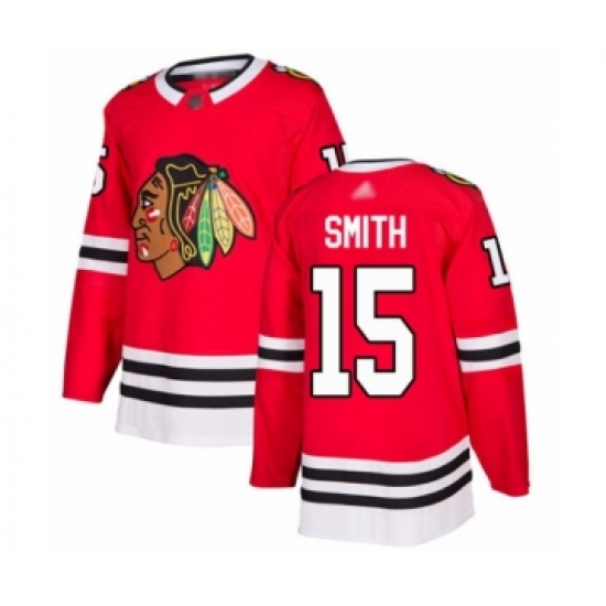 >Youth Chicago Blackhawks #15 Zack Smith Authentic Red Home Hockey Jersey