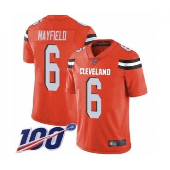 >Youth Cleveland Browns #6 Baker Mayfield Orange Alternate 100th Season Vapor Untouchable Limited Player Football Jersey