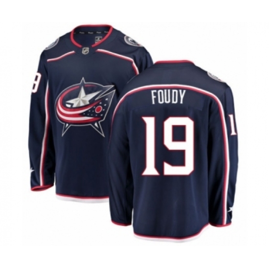 Men's Columbus Blue Jackets #19 Liam Foudy Authentic Navy Blue Home Fanatics Branded Breakaway NHL Jersey