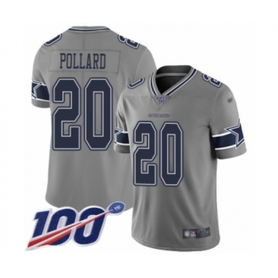 >Youth Dallas Cowboys #20 Tony Pollard Limited Gray Inverted Legend 100th Season Football Jersey