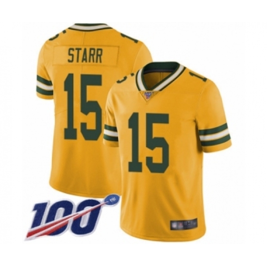 >Youth Green Bay Packers #15 Bart Starr Limited Gold Rush Vapor Untouchable 100th Season Football Jersey