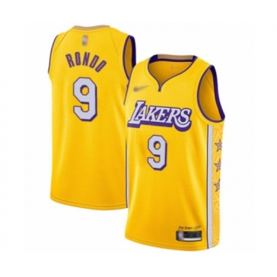 >Youth Los Angeles Lakers #9 Rajon Rondo Swingman Gold Basketball Jersey - 2019 20 City Edition