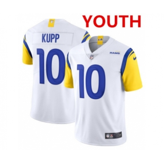 >Youth Los Angeles Rams #10 Cooper Kupp 2021 White Vapor Untouchable Limited Alternate Stitched NFL Jersey