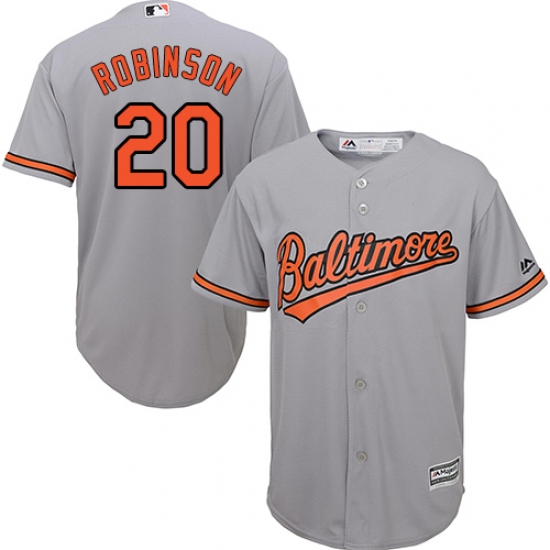 Home>MLB>Baltimore Orioles>Frank Robinson>Youth Majestic Baltimore Orioles #20 Frank Robinson Replica Grey Road Cool Base MLB Jersey