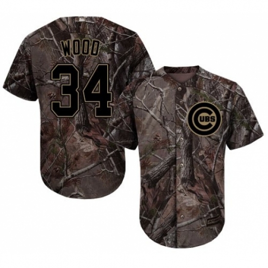 Men's Majestic Chicago Cubs #34 Kerry Wood Authentic Camo Realtree Collection Flex Base MLB Jersey