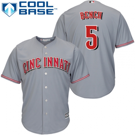 Home>MLB>Cincinnati Reds>Johnny Bench>Youth Majestic Cincinnati Reds #5 Johnny Bench Authentic Grey Road Cool Base MLB Jersey