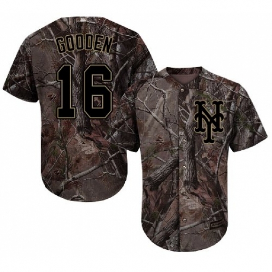 >Youth Majestic New York Mets #16 Dwight Gooden Authentic Camo Realtree Collection Flex Base MLB Jersey