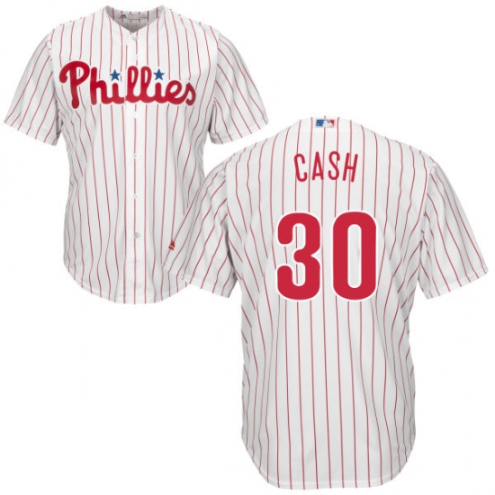 Home>MLB>Philadelphia Phillies>Dave Cash>Youth Majestic Philadelphia Phillies #30 Dave Cash Authentic White/Red Strip Home Cool Base MLB Jersey