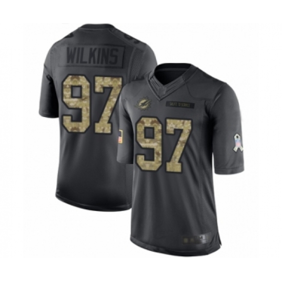 >Youth Miami Dolphins #97 Christian Wilkins Limited Black 2016 Salute to Service Football Jersey