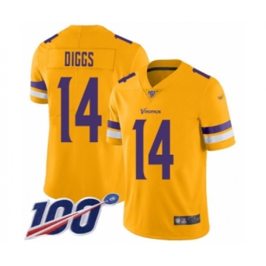 >Youth Minnesota Vikings #14 Stefon Diggs Limited Gold Inverted Legend 100th Season Football Jersey