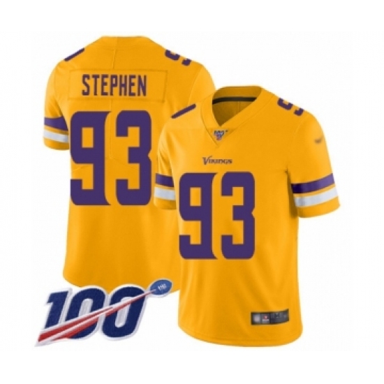 >Youth Minnesota Vikings #93 Shamar Stephen Limited Gold Inverted Legend 100th Season Football Jersey