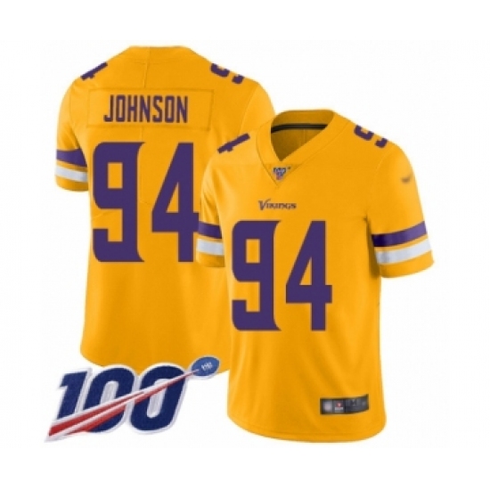 >Youth Minnesota Vikings #94 Jaleel Johnson Limited Gold Inverted Legend 100th Season Football Jersey
