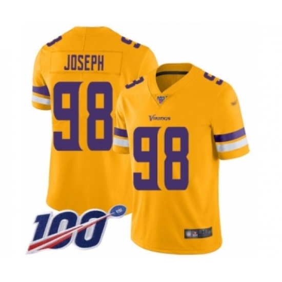 Men's Minnesota Vikings #98 Linval Joseph Limited Gold Inverted Legend 100th Season Football Jersey