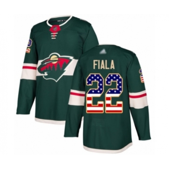 >Youth Minnesota Wild #22 Kevin Fiala Authentic Green USA Flag Fashion Hockey Jersey