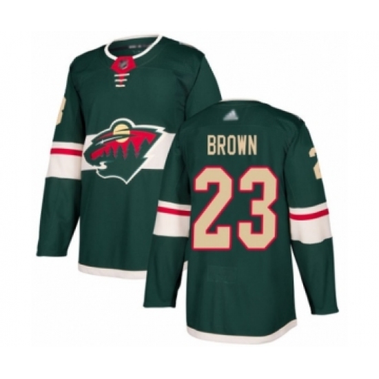 >Youth Minnesota Wild #23 J.T. Brown Authentic Green Home Hockey Jersey