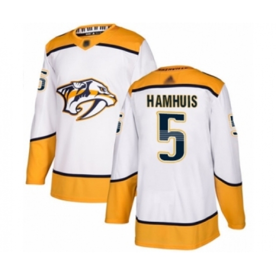 >Youth Nashville Predators #5 Dan Hamhuis Authentic White Away Hockey Jersey