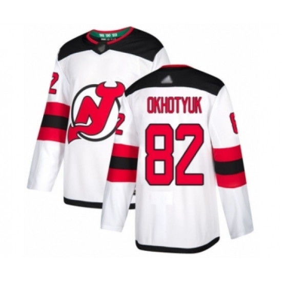 >Youth New Jersey Devils #82 Nikita Okhotyuk Authentic White Away Hockey Jersey