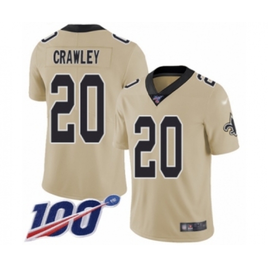 >Youth New Orleans Saints #20 Ken Crawley Limited Gold Inverted Legend 100th Season Football Jersey