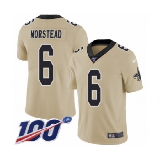 >Youth New Orleans Saints #6 Thomas Morstead Limited Gold Inverted Legend 100th Season Football Jersey