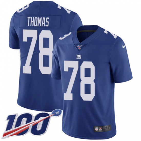 >Youth New York Giants #78 Andrew Thomas Royal Blue Team Color Stitched NFL 100th Season Vapor Untouchable Limited Jersey