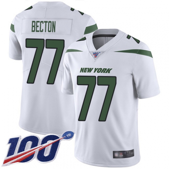 >Youth New York Jets #77 Mekhi Becton White Stitched 100th Season Vapor Untouchable Limited Jersey