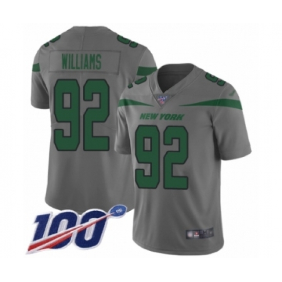 >Youth New York Jets #92 Leonard Williams Limited Gray Inverted Legend 100th Season Football Jersey