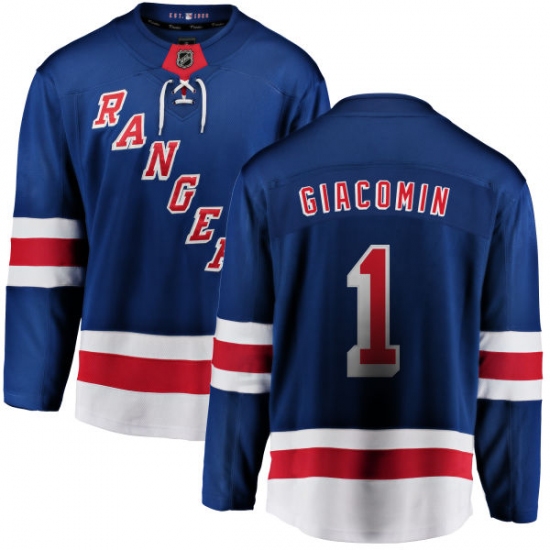 Home>NHL>New York Rangers>Eddie Giacomin>Youth New York Rangers #1 Eddie Giacomin Fanatics Branded Royal Blue Home Breakaway NHL Jersey
