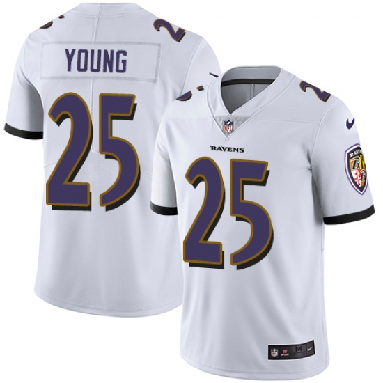 Home>NFL>Baltimore Ravens>Tavon Young>Youth Nike Baltimore Ravens #25 Tavon Young White Vapor Untouchable Limited Player NFL Jersey