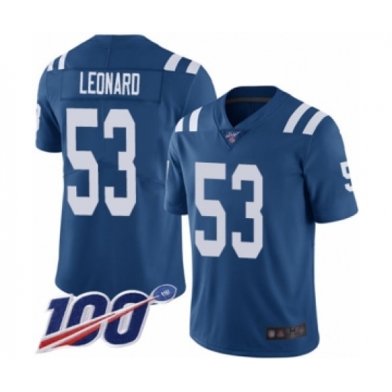 Youth Nike Indianapolis Colts #53 Darius Leonard Royal Blue Team Color Vapor Untouchable Limited Player 100th Season NFL Jersey