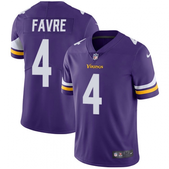Home>NFL>Minnesota Vikings>Brett Favre>Youth Nike Minnesota Vikings #4 Brett Favre Purple Team Color Vapor Untouchable Limited Player NFL Jersey