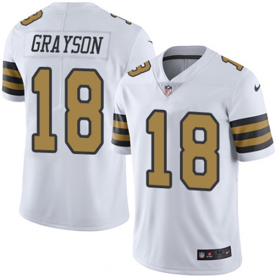 Home>NFL>New Orleans Saints>Garrett Grayson>Youth Nike New Orleans Saints #18 Garrett Grayson Limited White Rush Vapor Untouchable NFL Jersey