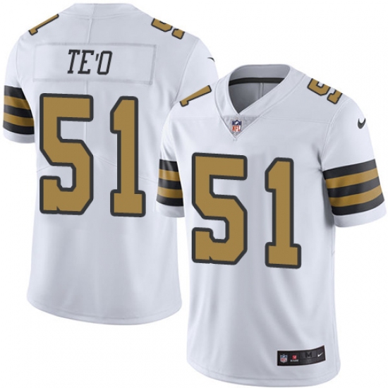 Home>NFL>New Orleans Saints>Manti Te'o>Youth Nike New Orleans Saints #51 Manti Te'o Limited White Rush Vapor Untouchable NFL Jersey