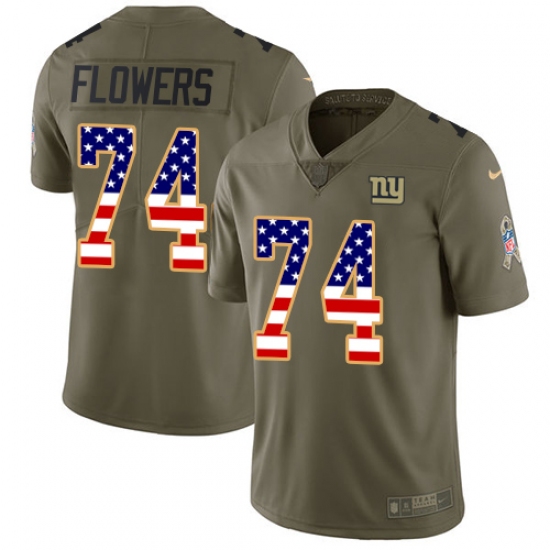 Home>NFL>New York Giants>Ereck Flowers>Youth Nike New York Giants #74 Ereck Flowers Limited Olive/USA Flag 2017 Salute to Service NFL Jersey