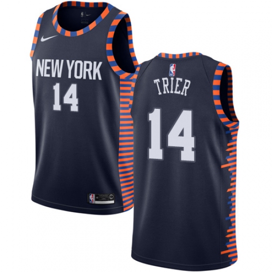>Youth Nike New York Knicks #14 Allonzo Trier Swingman Navy Blue NBA Jersey - 2018 19 City Edition