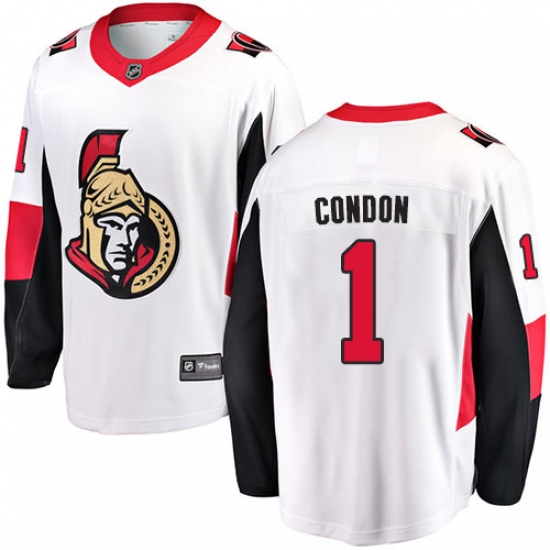 Youth Ottawa Senators #1 Mike Condon Fanatics Branded White Away Breakaway NHL Jersey