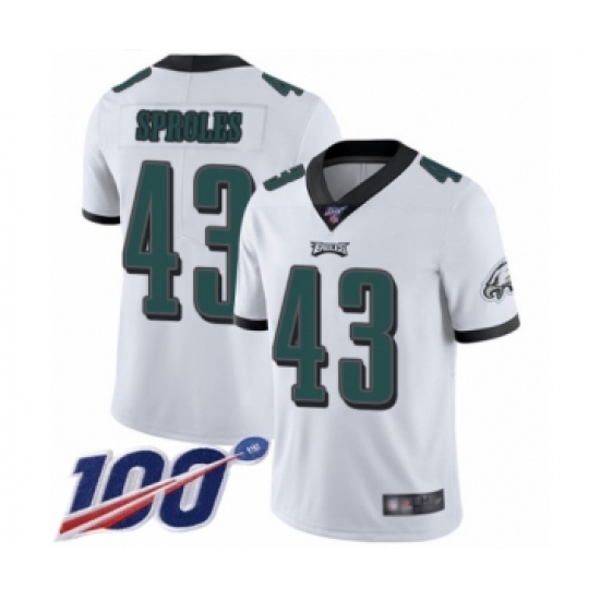 >Youth Philadelphia Eagles #43 Darren Sproles White Vapor Untouchable Limited Player 100th Season Football Jersey