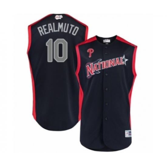 >Youth Philadelphia Phillies #10 J. T. Realmuto Authentic Navy Blue National League 2019 Baseball All-Star Jersey